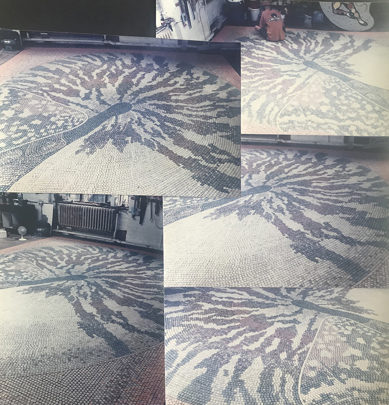 Here are some pictures of the mosaic floor I made for a hotel in the Maldives — years ago now. The lightest of the terracotta coloured tesserae (which were all hand made in and exported to us from Singapore) were rather soft, as terracotta tiles tend to be. The material we used alongside it (as instructed by the client) was marble. This would have been much harder wearing. It’s rather anomalous to combine such hard and soft materials, and I sometimes wonder if it has survived.